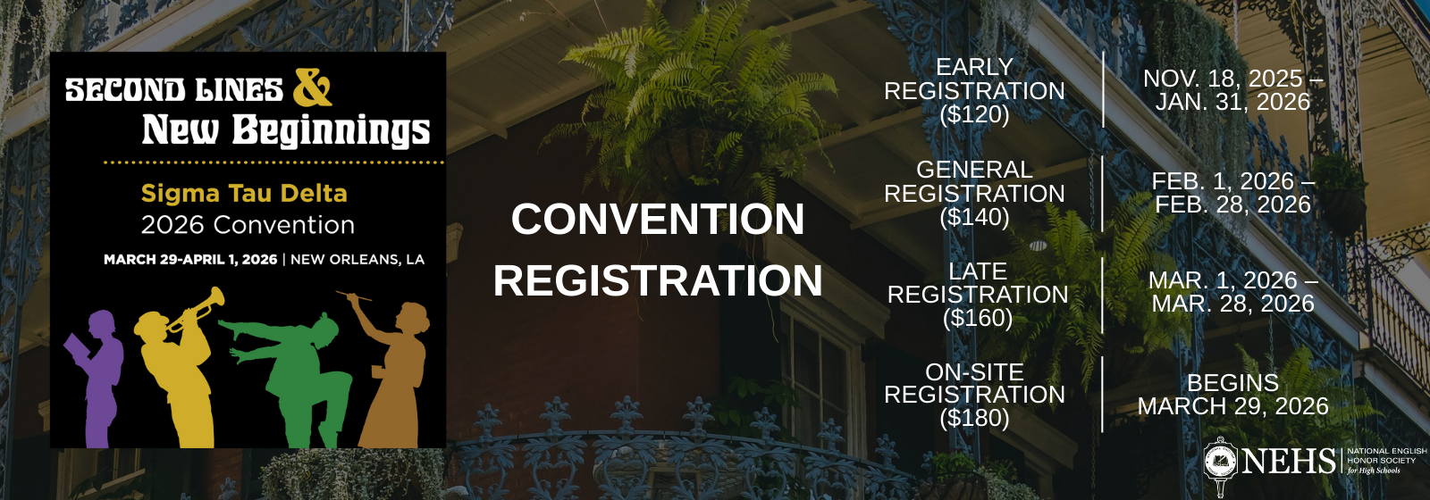 Register Now for the NEHS ConventionMarch 02, 2026Let the Good Times Read: Join us in New Orleans for the NEHS ConventionOctober 15, 2025NEHS 2026 ConventionSeptember 22, 2025Updates to Awards, Grants, and Scholarships for 2025-2026July 14, 2025