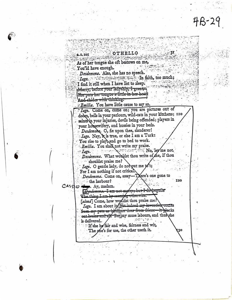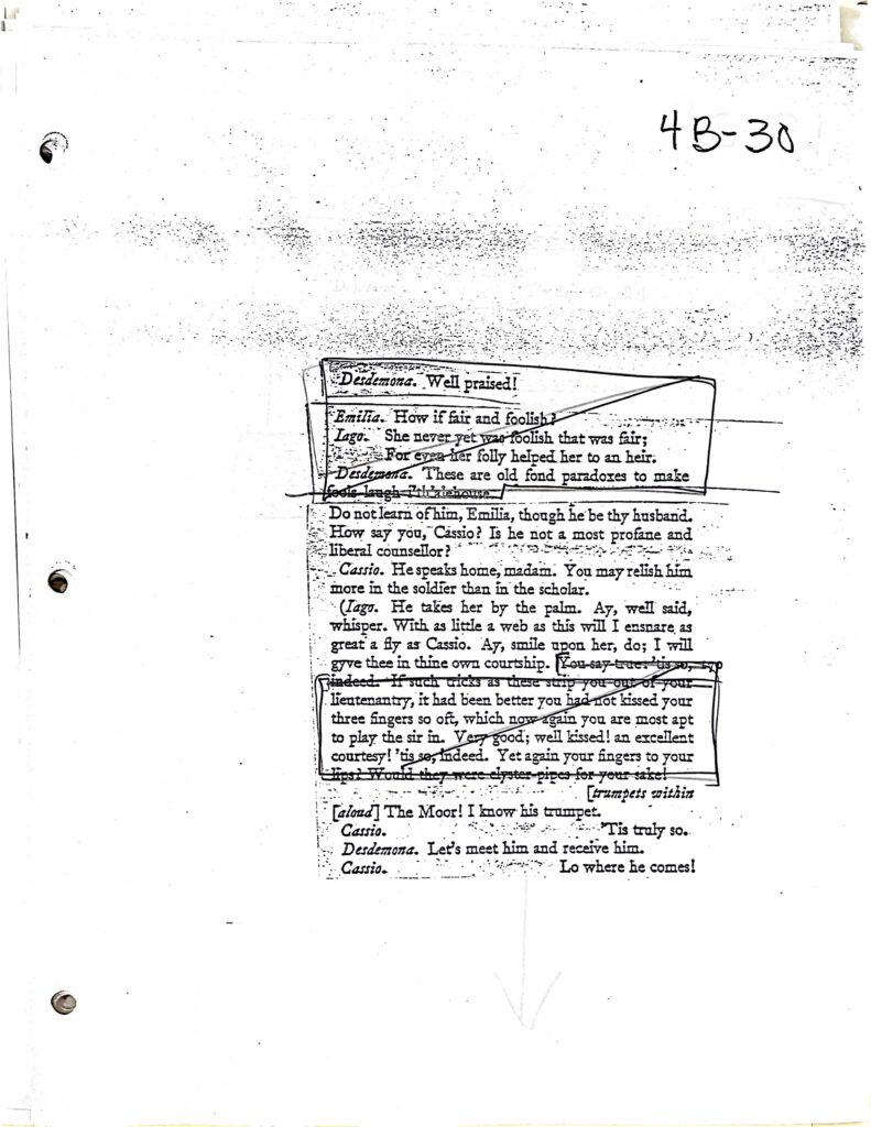 Thanks to the grant, we were able to scan countless materials to share with future students, including copies of script changes, blocking, and stage combat choreography. We plan to have students compare these choices and create their own plans for staging scenes based on their interpretations of the play.