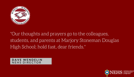 Once again, we turn to each other in tears, trying to comprehend the tragedy that unfolded in Florida yesterday. Questions abound, but few satisfying answers are found. Almost nineteen years ago, my home school district plunged into mourning when the Columbine horror occurred; just ten years ago yesterday, the campus of Northern Illinois University, home of NEHS and Sigma Tau Delta, was forced onto the list of educational institutions rocked by violence. And now Marjory Stoneman Douglas High School in Parkland, a school with an NEHS chapter since 2005, becomes the latest to endure evil. Sadly, we are all too aware of the students, educators, and communities who have suffered their own school tragedies. At times like these, we must rely on each other for support and strength.