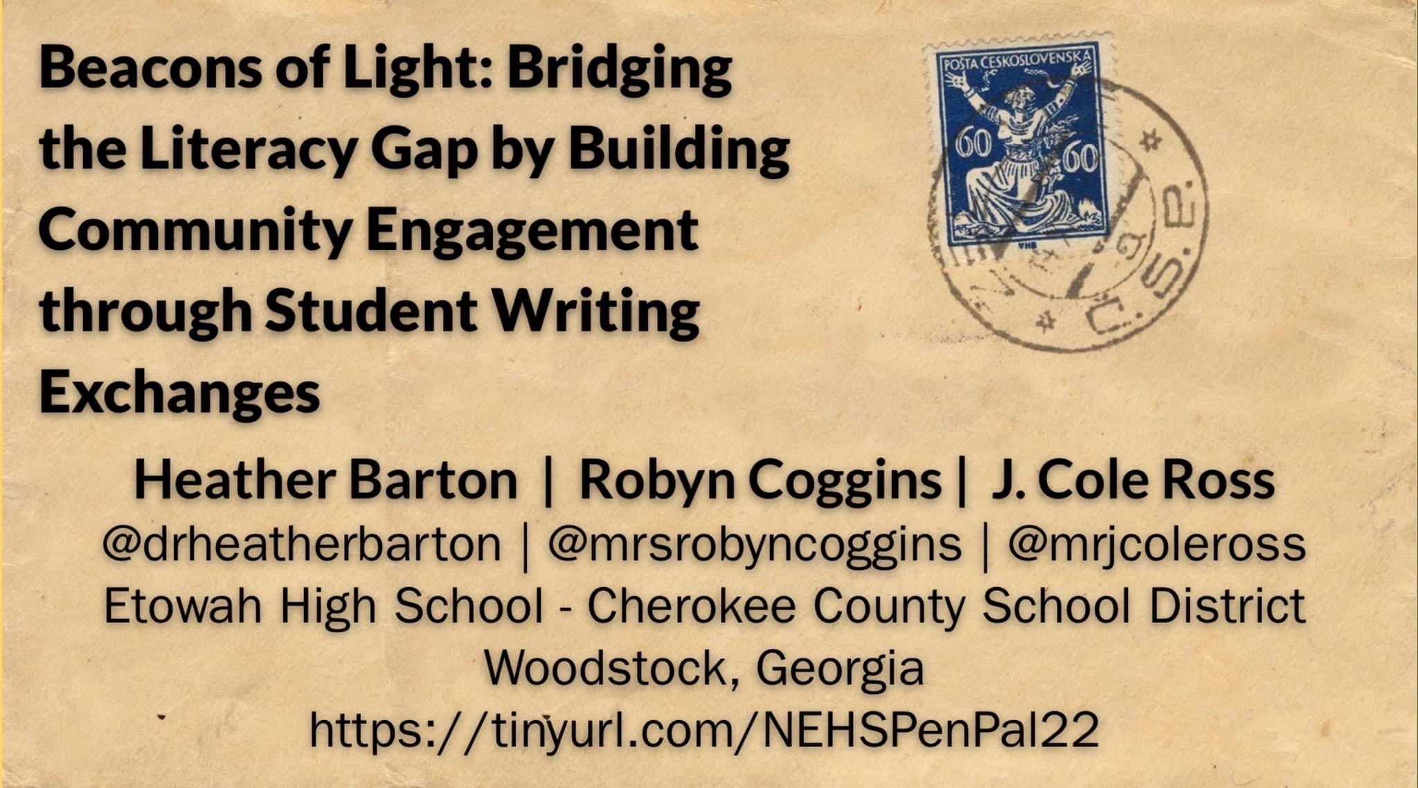 My favorite part of the convention was not getting on my first plane ride ever to literally go across the country (though that was quite the experience). My favorite part was that in our session, a Pen Pal Program was created for two schools in California, and we have already had many people tell us that they plan on taking it back to their home school. We hope that our presentation was powerful and impactful, and we would love to talk to you about starting pen pals or a similar program. Please feel free to contact us on Instagram (@drheatherbarton, @mrsrobyncoggins, and @mrjcoleross) or Twitter (@drheatherbarton and @mrjcoleross).