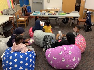 The grant also allowed us to create a welcoming reading environment with new bean bag chairs and provide gift cards and books as incentives for NEHS student members. Even when children aren’t present, NEHS members use the time to connect with one another about school, college plans, and life.