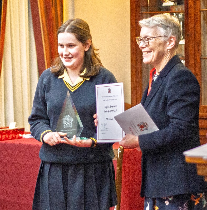 Highly Commended awards went to Saijal Beniparshad (The Gatwick School) for her moving speech on indentured labour in South Africa, and Oscar Kuroptwa (City of London School) for his urgent call for worldwide abolition of the death penalty.