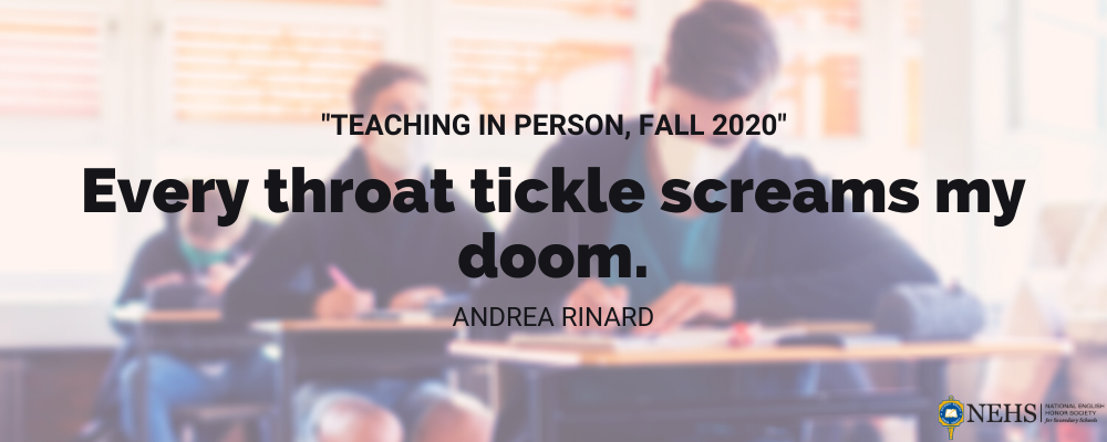 It doesn’t take much more than six words to capture the feeling of teaching in person this year. At the same time, there just aren’t enough words. This is Andrea Rinard’s twenty-eighth year in the classroom, yet, she feels like a first-year teacher all over again. Through it all, she loves teaching and instilling a love for words in her students. As a writer, Rinard looks for those doorways into stories and waits for characters to lead her where they want her to go. Her work has been published in various literary journals, and her first novel, Afterworld, is currently being considered for publication. You can find her on Twitter @aprinard and on her website www.rinardwrites.com.